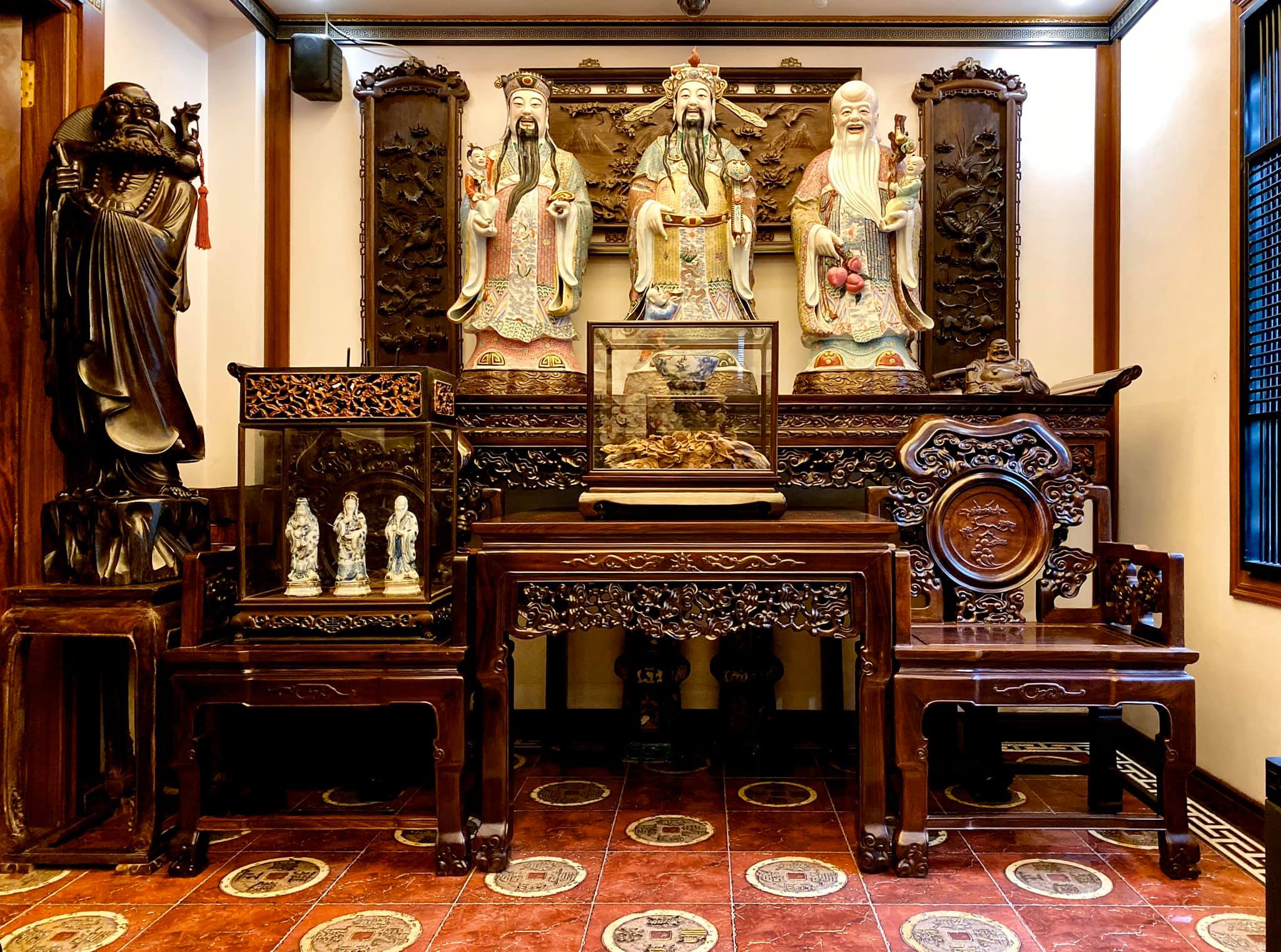 Phòng khách và những linh vật trưng bày theo phong cách Á Đông